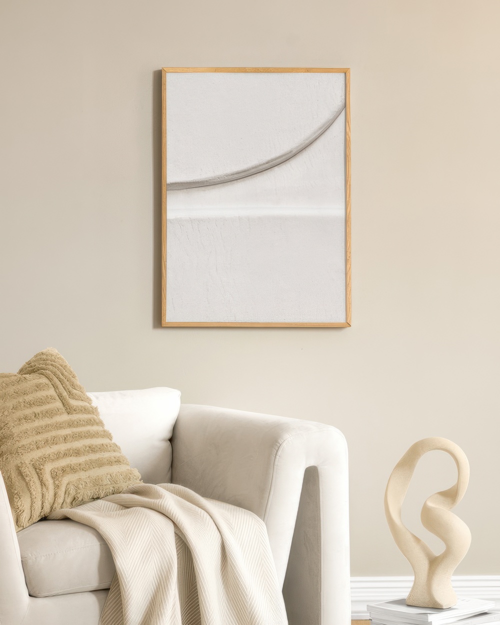 Modern texture print in light beige. The print can be styled on its own or together with other prints in a gallery wall. Combine it with the "Minimalistic Texture No1" poster, and you will have a minimalistic pair. This print has a flat surface with a 3D illusion.