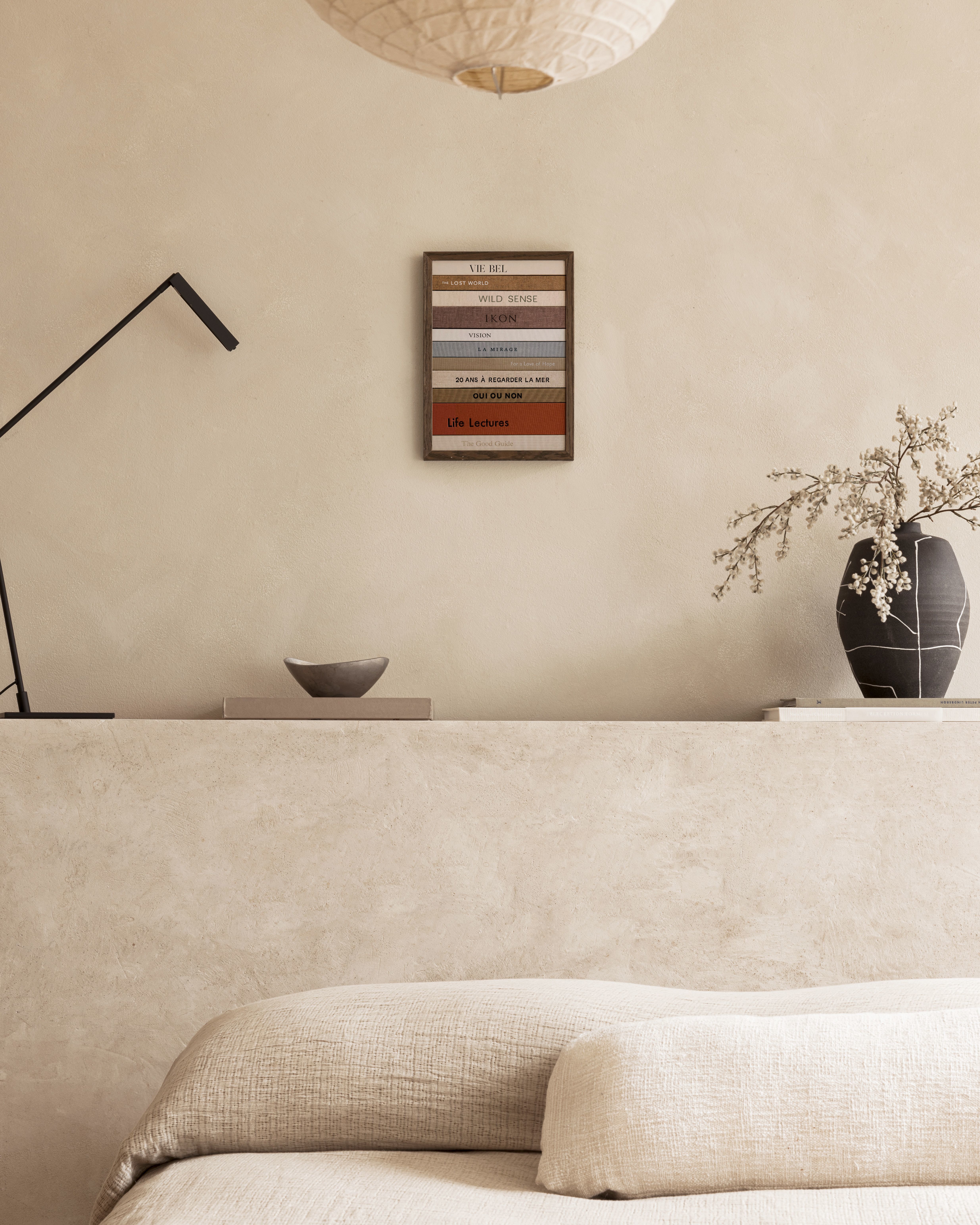 갈색과 베이지 톤의 다채로운 책등이 쌓여 있는 모습을 담은 포스터로, 책을 사랑하는 사람들을 위한 완벽한 벽면 아트입니다.
