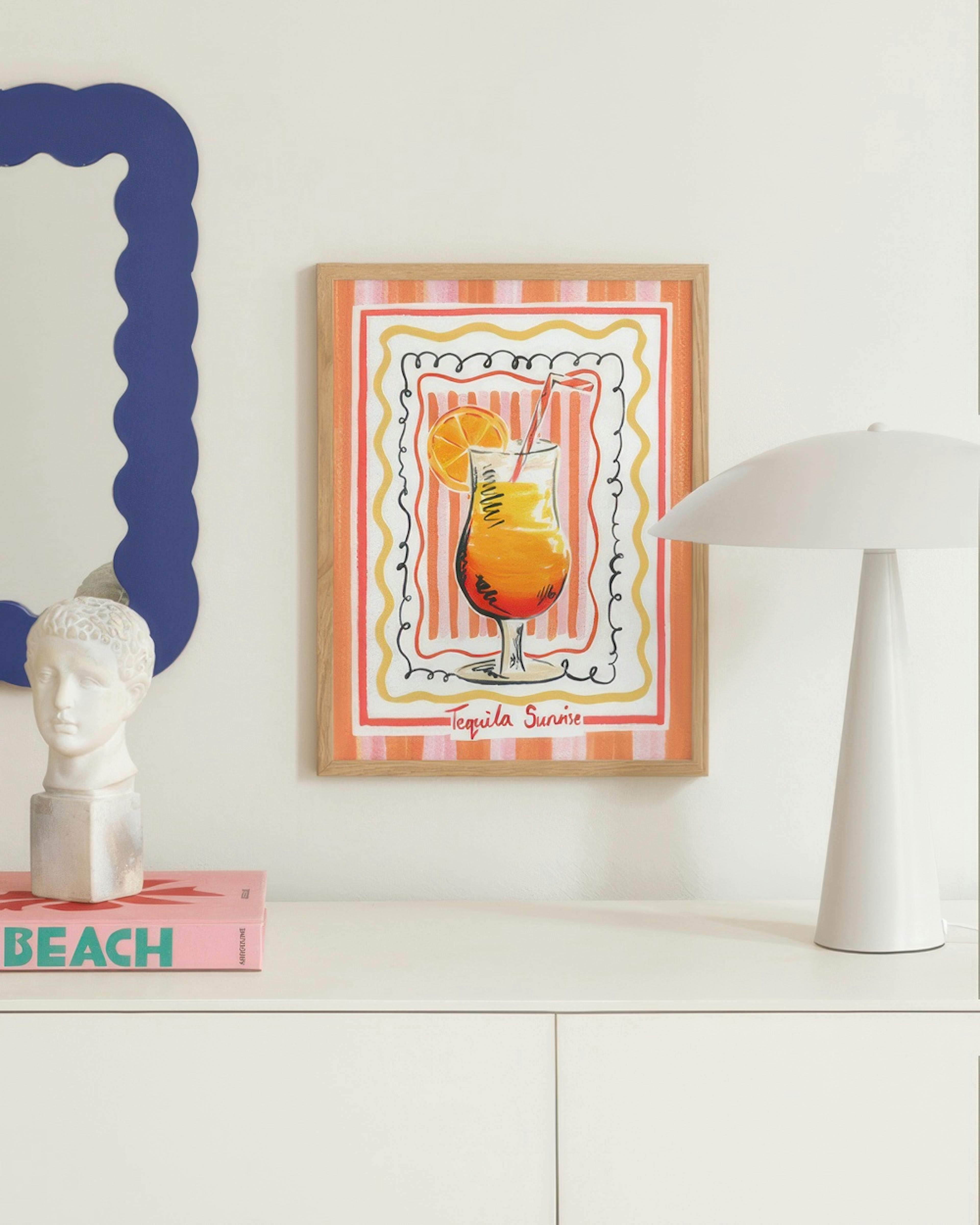 From ₩38,363Delight in the vibrant expression of this vivid illustration print showing a Tequila Sunrise cocktail. The drink is painted in sunlit yellow and rich orange, garnished with a refreshing slice of orange. The artwork subtly embodies the liveliness and charm of a delightful cocktail hour. "Tequila Sunrise" is scripted at the bottom, rounding off this beautiful piece.